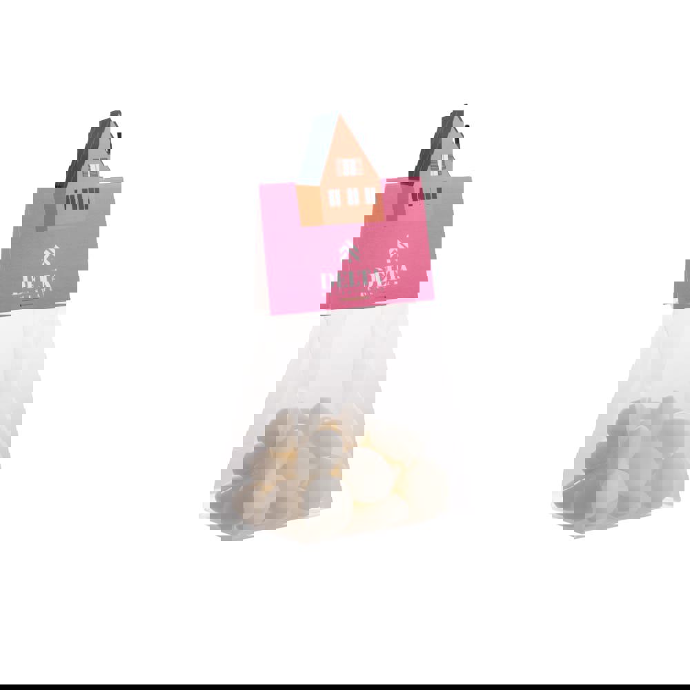 Transparant blokzakje met full colour bedrukt kopkaartje in eigen vorm, gevuld met ca. 50 gram Winegums