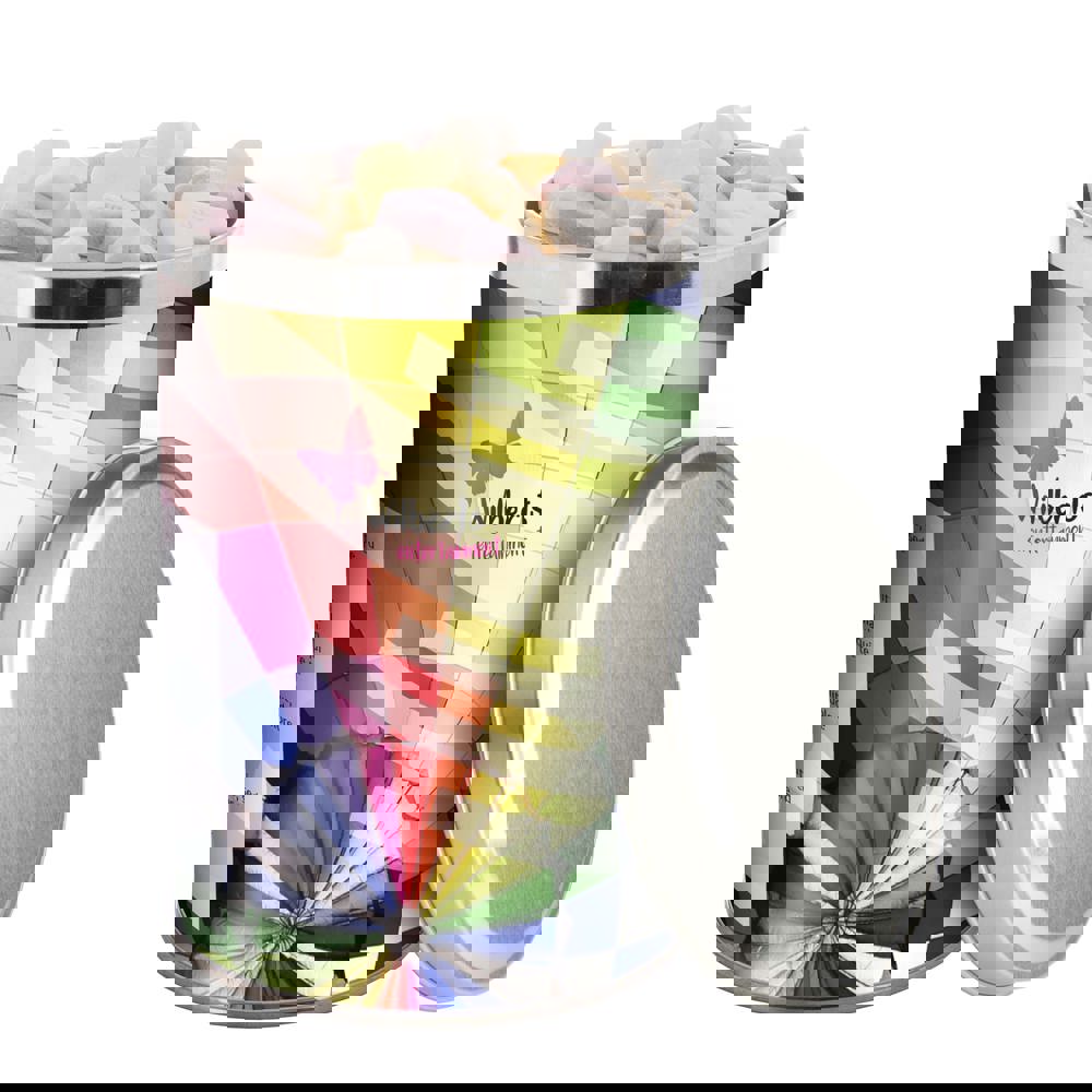 Ook leverbaar als kleinere beker met 150 gram hartjes of duimpjes.