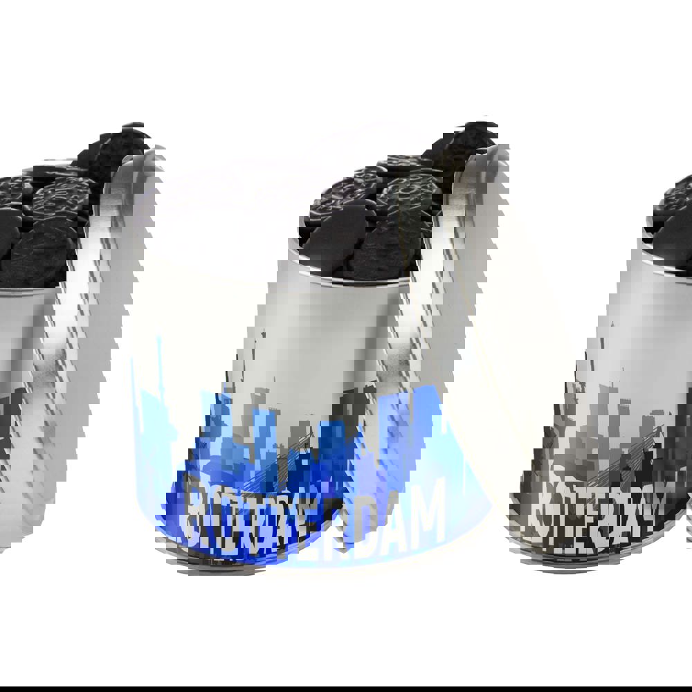 Trolley dispenser oranje voorzien van een full colour bedrukking op de voorzijde, gevuld met ca. 5 gram mini pepermuntjes