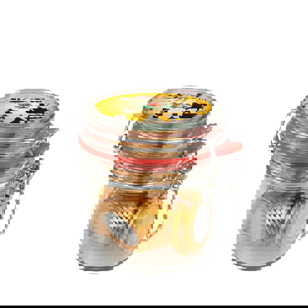 Weckpotje 0,25 liter gevuld met ca. 140 gram Tum Tum en voorzien van een full colour sticker op het deksel