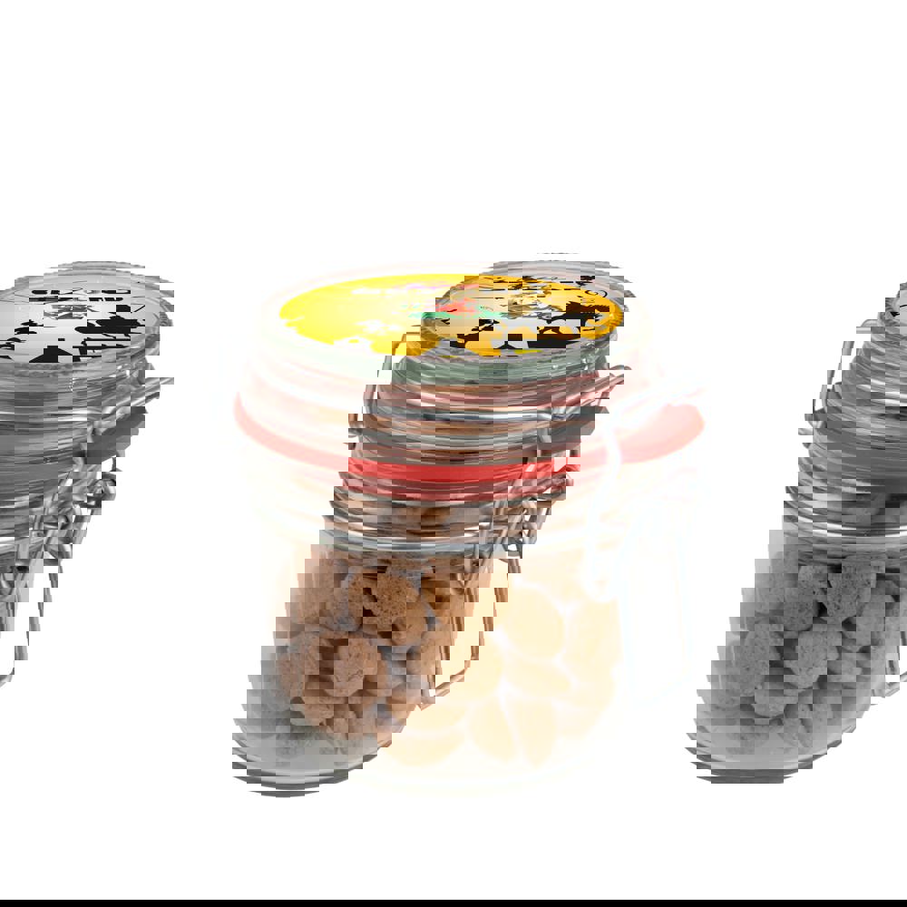 Weckpotje 0,25 liter gevuld met ca. 140 gram Tum Tum en voorzien van een full colour sticker op het deksel
