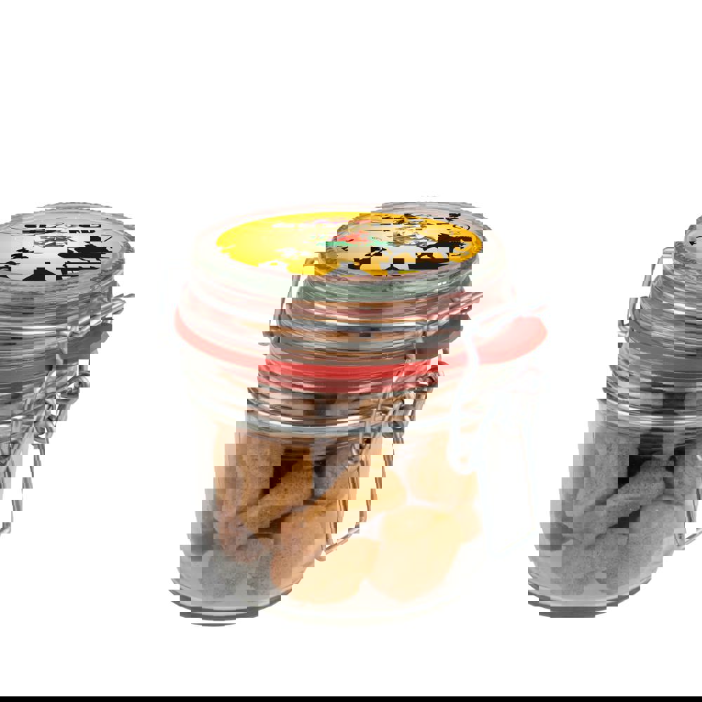 Weckpotje 0,25 liter gevuld met ca. 140 gram Tum Tum en voorzien van een full colour sticker op het deksel