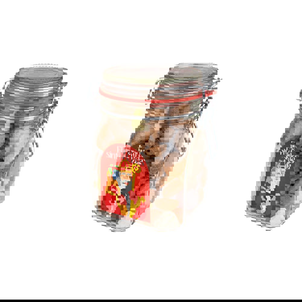 Weckpot 0,9 liter gevuld met ca. 675 gram Dropstaafjes mix en voorzien van een full colour sticker aan de voorzijde