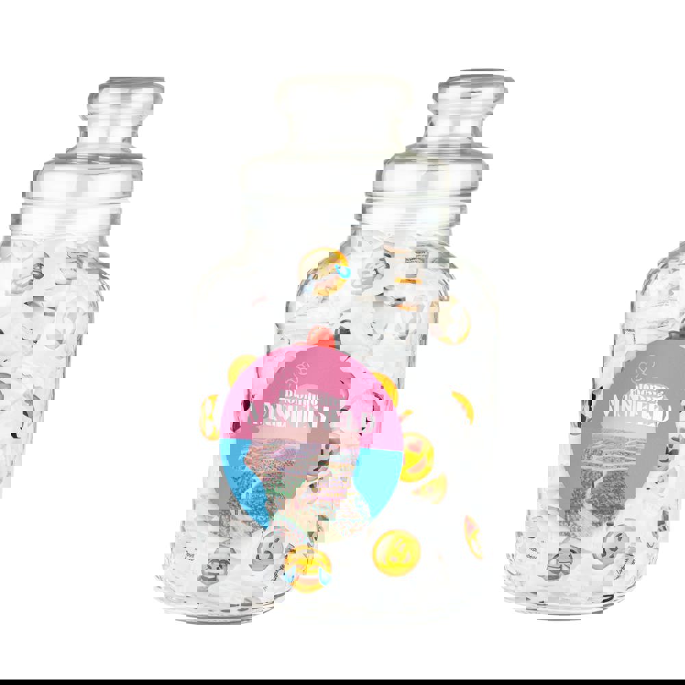 Nostalgische snoeppot voorzien van een full colour sticker op de voorzijde en gevuld met ca. 1015 gram Schoolkrijt