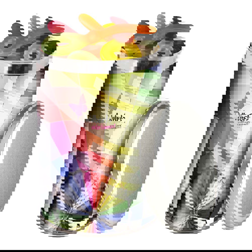Groot blik 1,3 liter voorzien van een full colour bedrukte sleeve en gevuld met ca. 830 gram Muntdrop