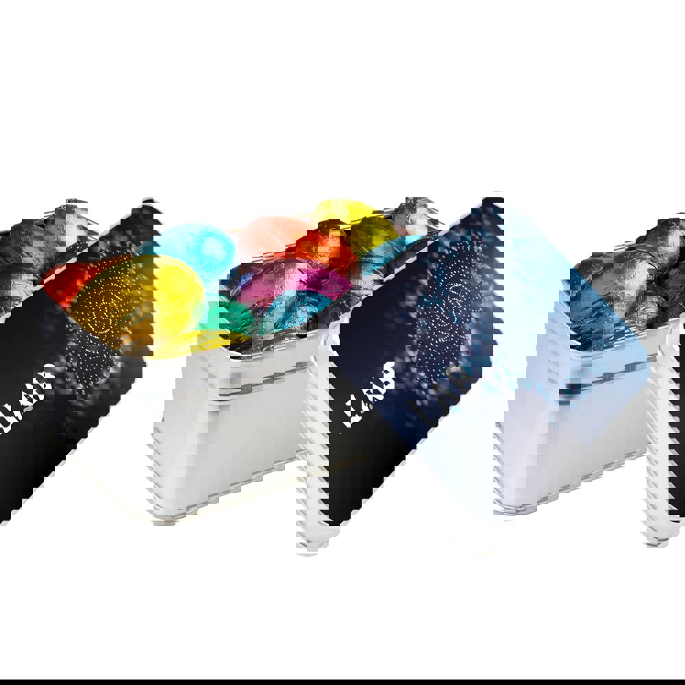 Rechthoekig blik gevuld met ca. 290 gram Schoolkrijt en voorzien van een full colour bedrukking op het deksel