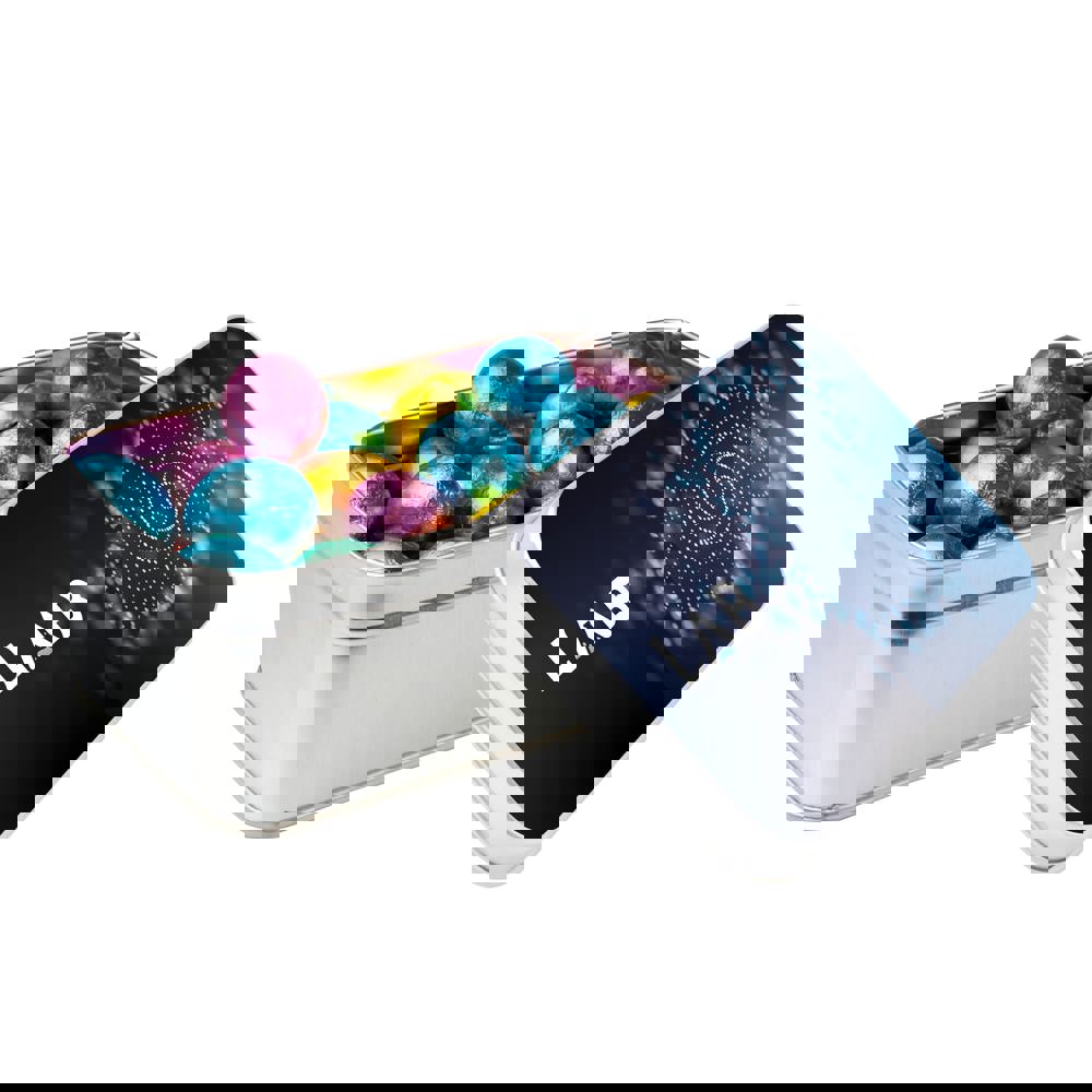 Rechthoekig blik gevuld met ca. 290 gram Schoolkrijt en voorzien van een full colour bedrukking op het deksel
