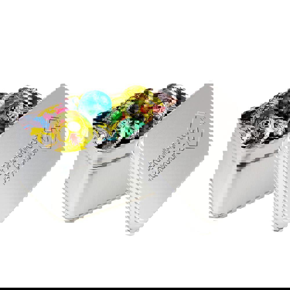 Rechthoekig blik voorzien van een embossing op het deksel gevuld met ca. 300 gram Oud Hollandse mix