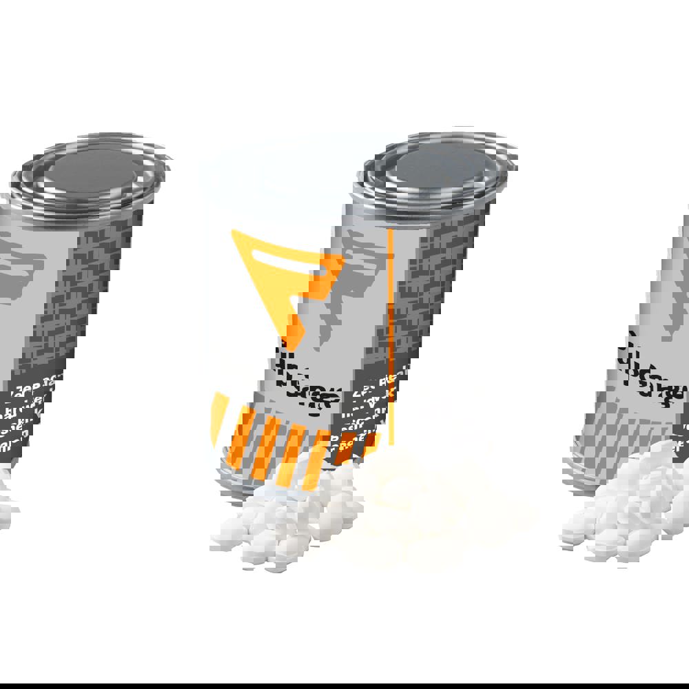 Klein verfblikje met een full colour wikkel, gevuld met ca. 100 gram Winegums
