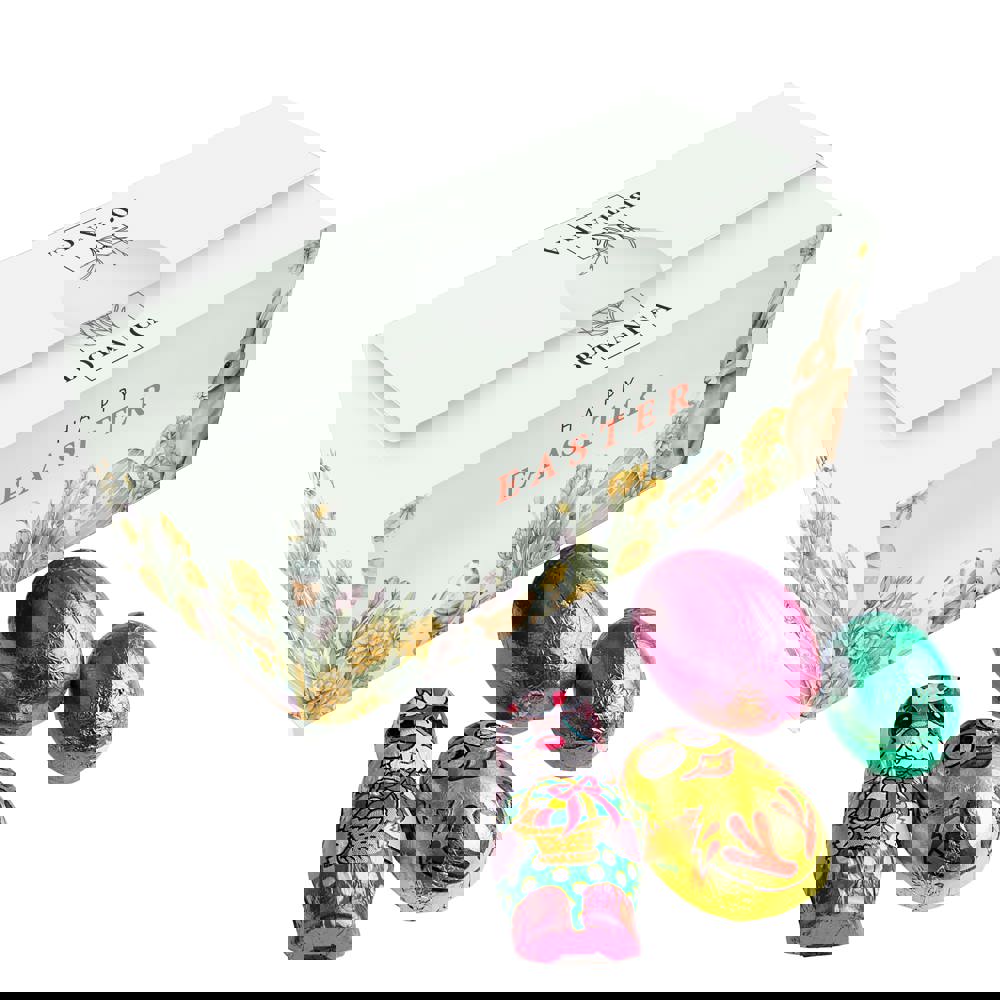 Ballotin doosje voorzien van een all-over full colour bedrukking en gevuld met ca. 155 gram Paasmix