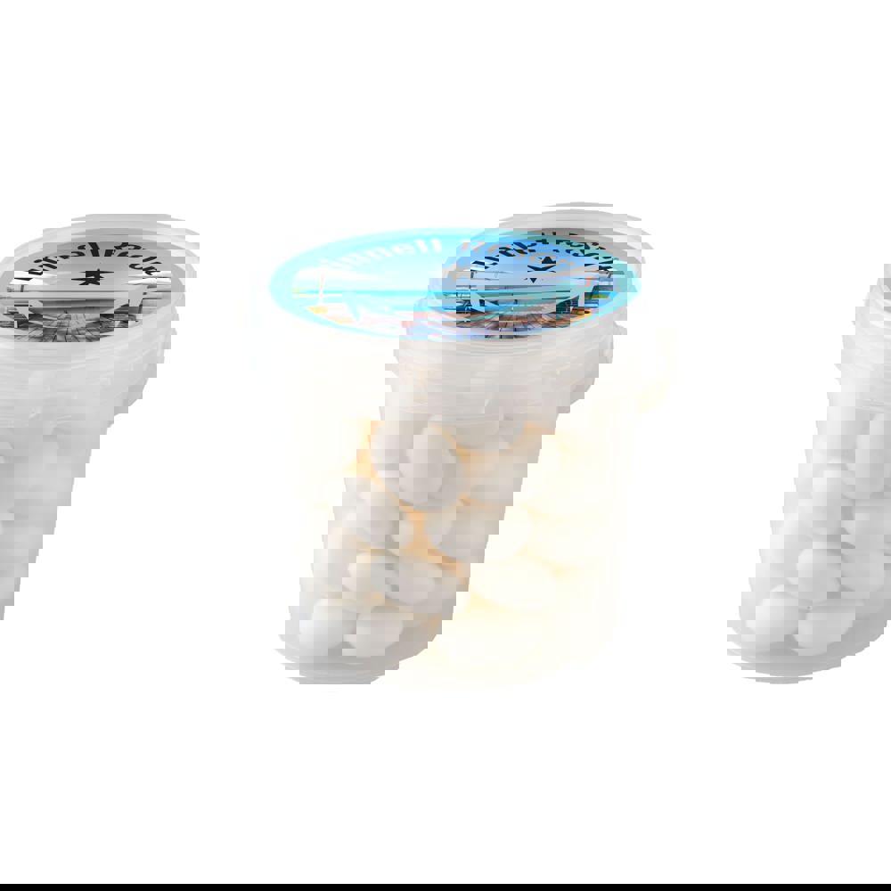 Transparant mini emmertje gevuld met ca. 130 gram Gemengd drop en voorzien van een full colour sticker op het deksel
