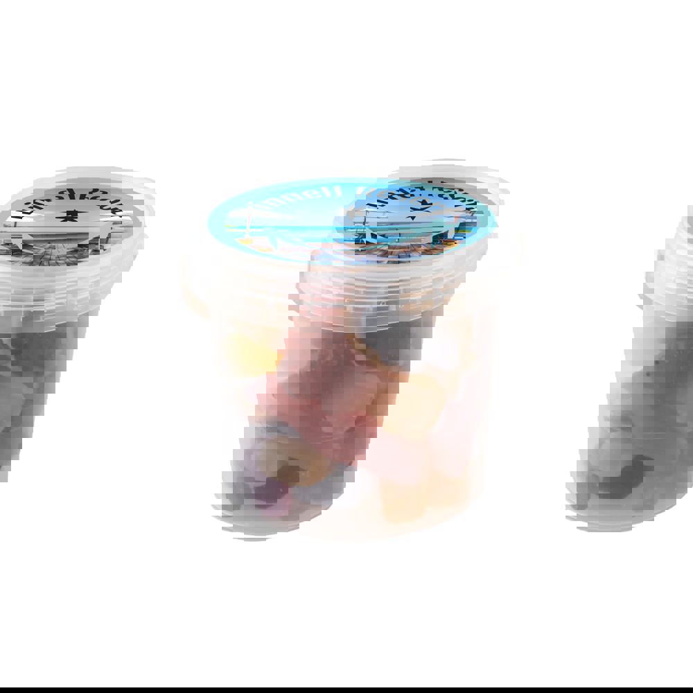 Transparant mini emmertje gevuld met ca. 130 gram Gemengd drop en voorzien van een full colour sticker op het deksel