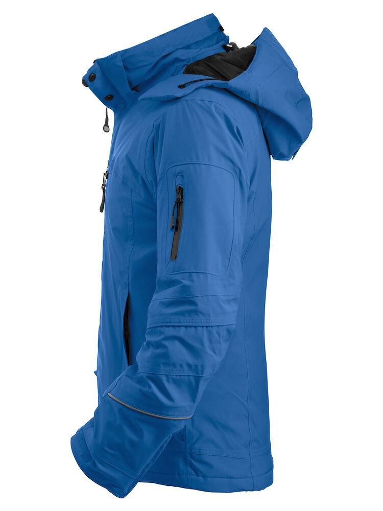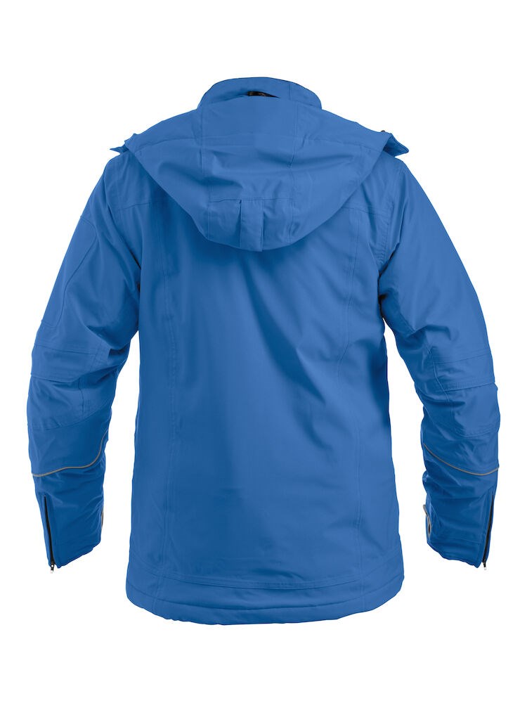 Uitgebreide, gevoerde softshell jas die bescherming biedt tegen wind en regen. De 2-laags softshell is voorzien van diverse zakken met rits, waaronder twee steekzakken, twee borstzakken, een zak op de mouw en twee binnenzakken. Verder is de jas uitgerust met ritsen en klittenband onderaan de mouwen, trekkoord in de boord en een afneembare capuchon voor een optimaal draagcomfort. De jas is gemakkelijk te veredelen dankzij de drukkersrits aan de binnenkant.