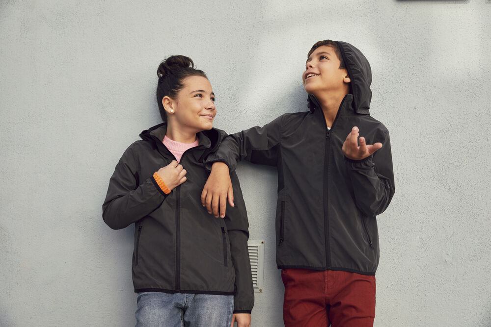 Functioneel reflecterend windjack met afneembare capuchon voor betere kinderveiligheid. Dit jack heeft een bird's eye-voering in de capuchon en bij de oksel voor meer comfort en ademend vermogen. Voorzien van twee zijzakken met rits en twee binnenzakken. Afgewerkt met contrastband rond de capuchon, boord en mouwen.