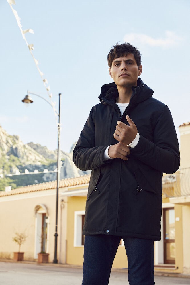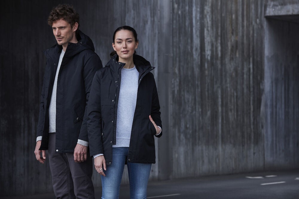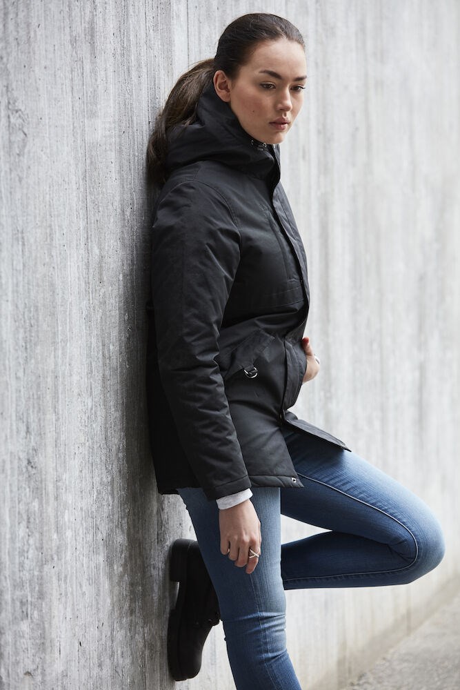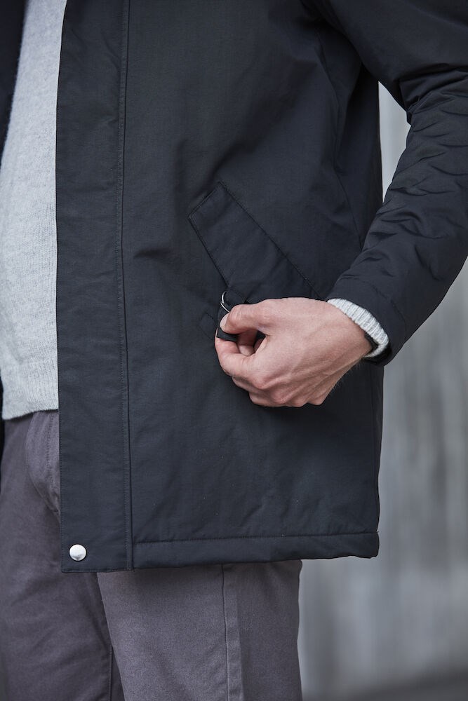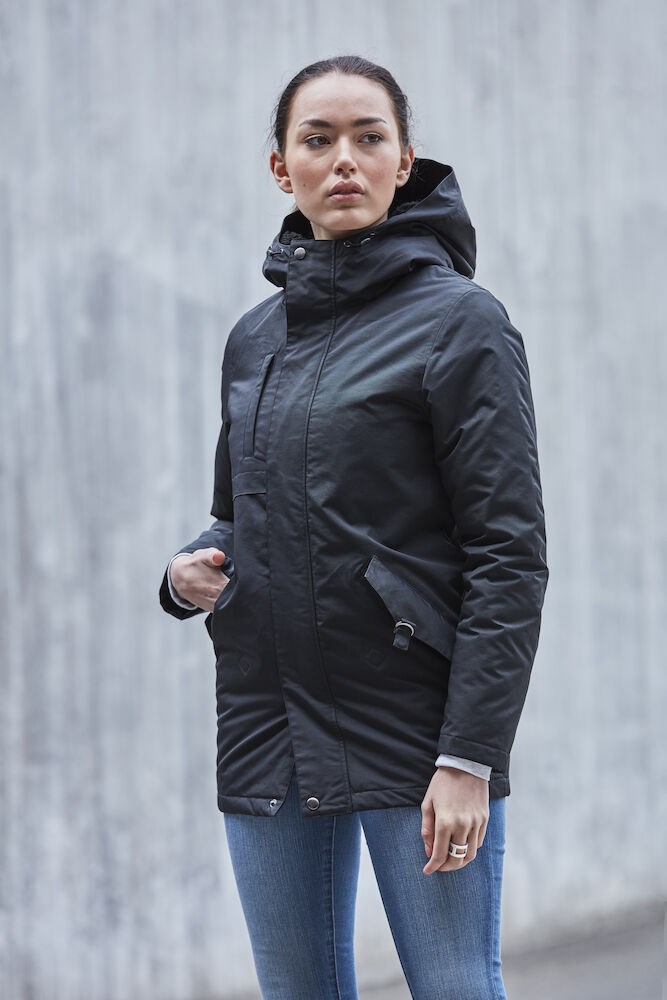 Hoogwaardige, gevoerde parka die bescherming biedt tegen wind en water. De parka is afgewerkt met een zachte voering in de capuchon en quilt voering op het lijf voor een optimaal draagcomfort. Daarnaast is de jas afgewerkt met verstelbare manchetten, een handige oplossing voor de koptelefoon en een trekkoord in de zoom. De borstzak met rits, twee zakken aan de voorzijde met magneten en een binnenzak met rits bieden voldoende opbergruimte. De jas is gemakkelijk te veredelen dankzij de drukkersrits aan de binnenzijde.