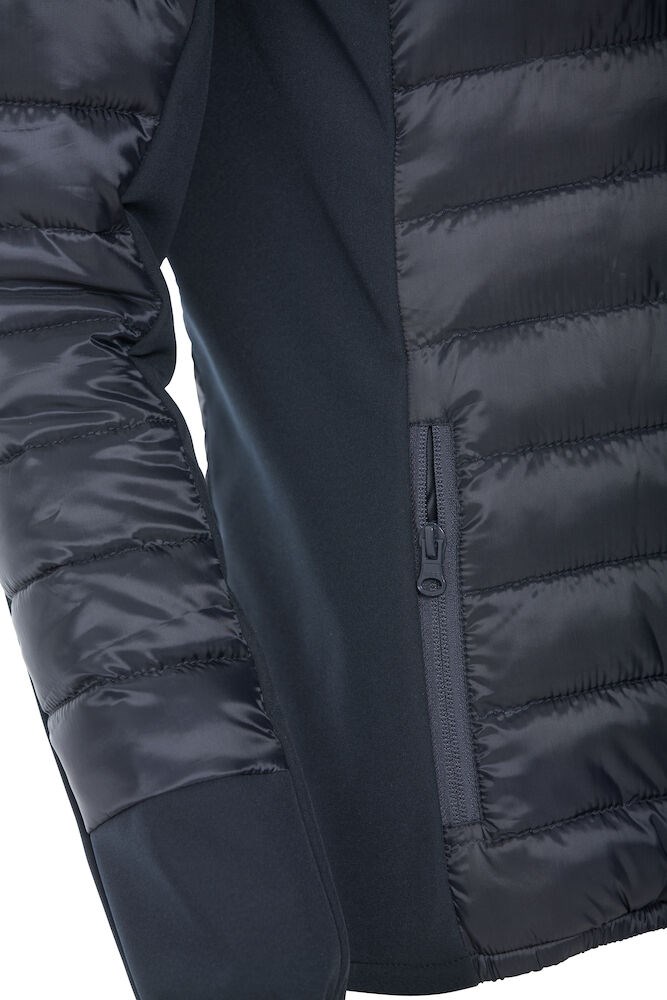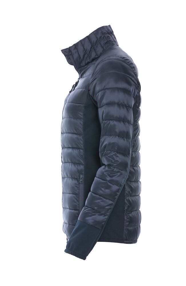 Opvallende gewatteerde jas met eigentijds design en een moderne pasvorm. De jas is zorgvuldig afgewerkt met elastiek in de boord en onderaan de mouwen, zijpanelen van softshell, necktape en ritsen. De jas is voorzien van twee steekzakken met rits, een borstzak met rits en binnenzakken. Deze moderne jas zorgt voor een professionele en eigentijdse uitstraling. Ideaal voor degene die op subtiele wijze op wil vallen.
