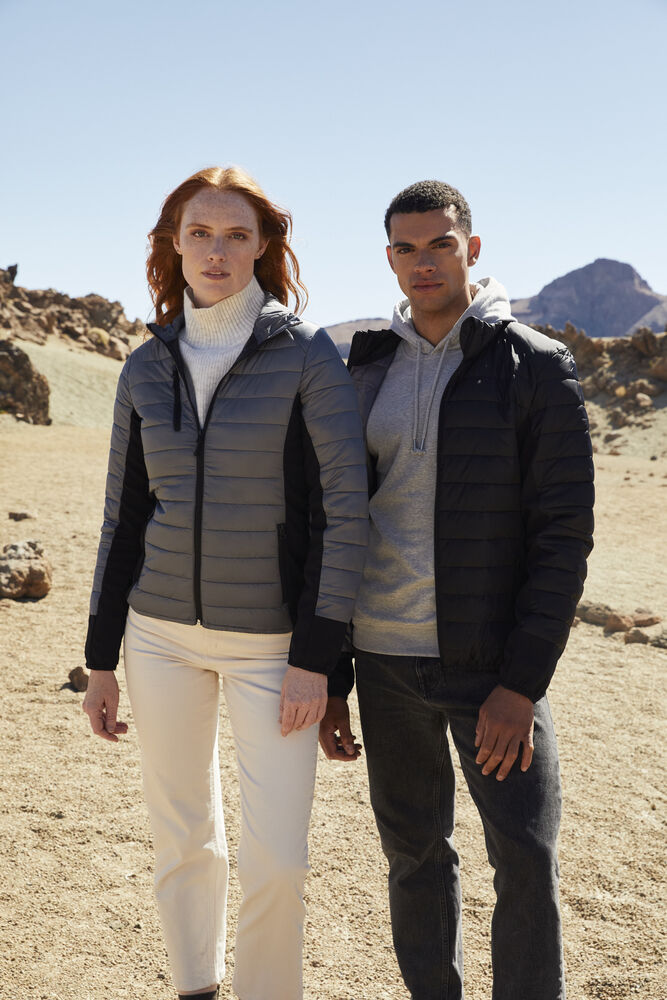 Opvallende gewatteerde jas met eigentijds design en een moderne pasvorm. De jas is zorgvuldig afgewerkt met elastiek in de boord en onderaan de mouwen, zijpanelen van softshell, necktape en ritsen. De jas is voorzien van twee steekzakken met rits, een borstzak met rits en binnenzakken. Deze moderne jas zorgt voor een professionele en eigentijdse uitstraling. Ideaal voor degene die op subtiele wijze op wil vallen.