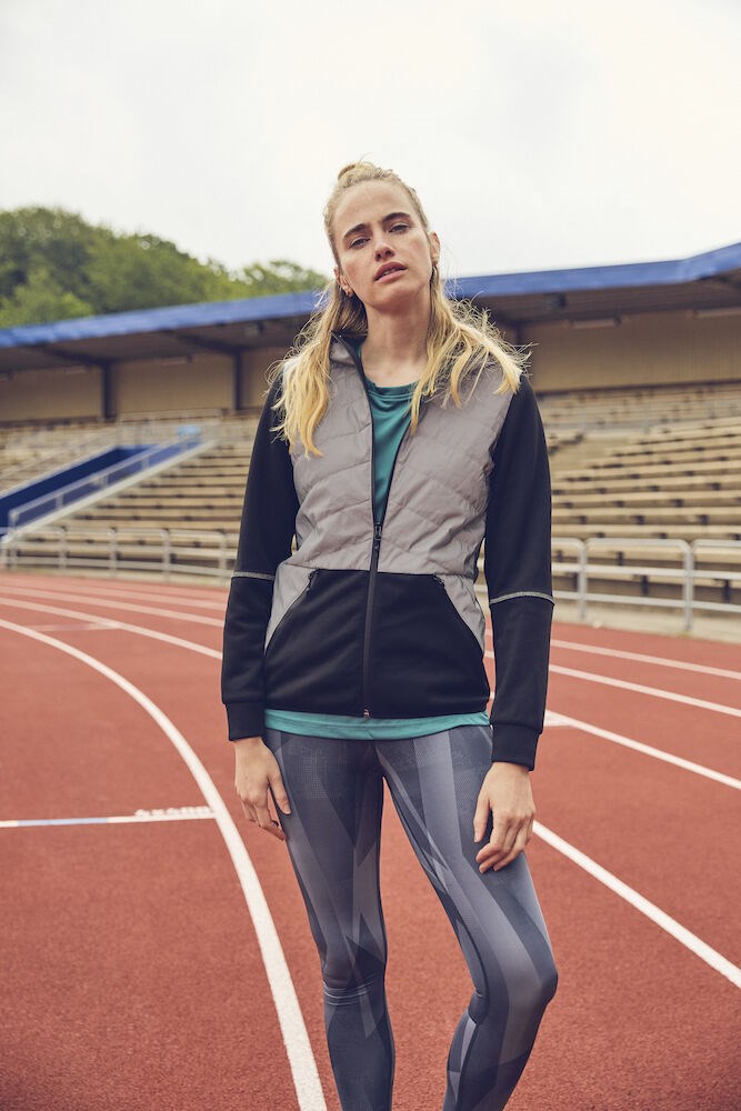 Een licht gewatteerd jack met moderne snit. Kleur 949 heeft grote reflecterende vlakken voor extra zichtbaarheid. De rits aan de voorzijde en de twee zijzakken zijn waterdicht. Verder is het jack afgewerkt met een doorvoer voor een koptelefoon en een eenvoudig te verwijderen label.