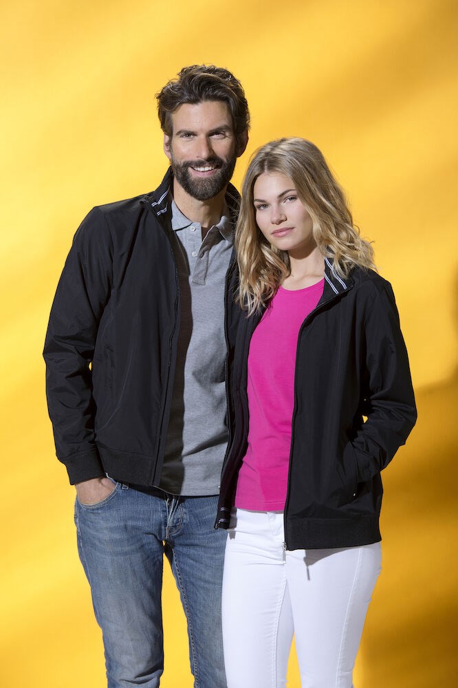 Moderne, unisex jas met PU-coating voor bescherming tegen wind en water. De jas heeft een eigentijdse uitstraling dankzij de moderne pasvorm en het hedendaagse design met contrasterende elementen aan de binnenkant van de mouw, onderaan en in de kraag. De jas is voorzien van twee steekzakken met rits en een binnenzak. De jas is gemakkelijk te veredelen dankzij de drukkersrits aan de binnenzijde.