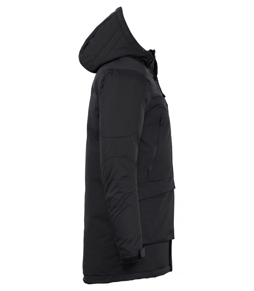 Een zwaar gewatteerde, unisex parka in expeditie-stijl. De parka is voorzien van een afneembare en verstelbare capuchon, voorgevormde mouwen voor meer bewegingsvrijheid en een trekkoord in de taille en in de zoom. De manchetten zijn verstelbaar met klittenband en hebben een 2x2 rib in de mouw. Verder biedt de parka genoeg opbergruimte met vier buitenzakken met waterdichte ritsen, twee buitenzakken met magneetsluiting, een verborgen veiligheidszak met een doorvoer voor een koptelefoon aan de binnenzijde van de sluiting, twee binnenzakken met een rits en twee binnenzakken van mesh. De borduurrits vereenvoudigt het veredelen van de parka.