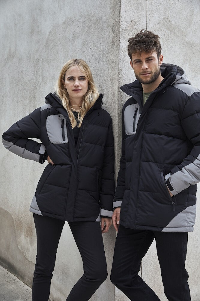 Een warme gewatteerde jas afgestemd op koude en donkere omstandigheden. Zo heeft de jas reflecterende eigenschappen en waterdichte SBS-ritsen op de borstzak en voorzakken. Verder is de jas afgewerkt met een afneembare, verstelbare capuchon en twee grote mesh binnenzakken. Het herenmodel heeft een trekkoord in de zoom terwijl dit bij het damesmodel in de taille zit. De manchetten zijn verstelbaar met klittenband en hebben een 2x2 rib in de mouw. Twee borduurritsen maken het veredelen van de jas eenvoudig.