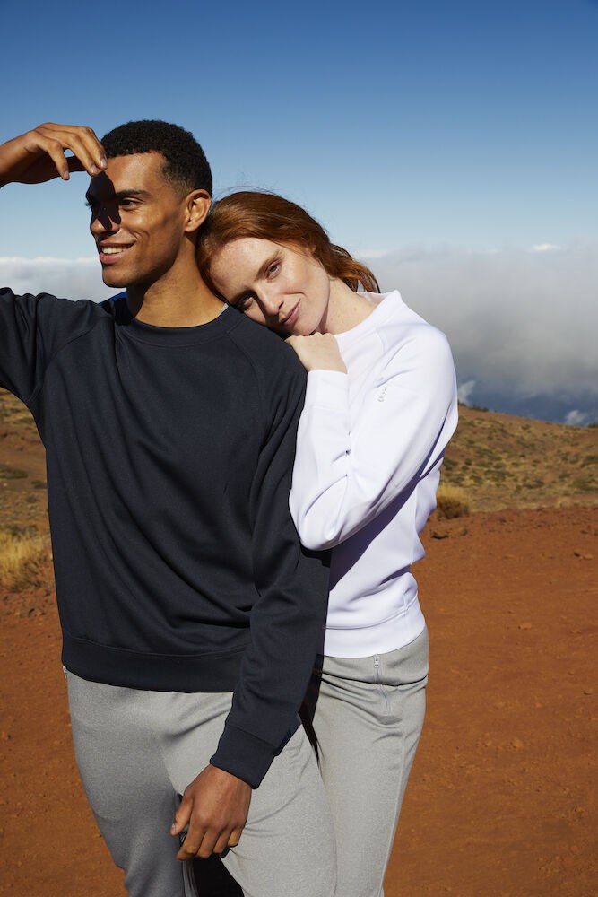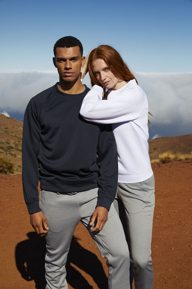Moderne ronde hals sweater met comfortabele pasvorm dankzij de raglan mouwen. De sweater is professioneel afgewerkt met ton sur ton zak met rits op de mouw, oplossing voor een koptelefoon, visgraat necktape en rib in de boord en onderaan de mouwen. Het sweatshirt is ingeverfd door middel van Spun Dyed.