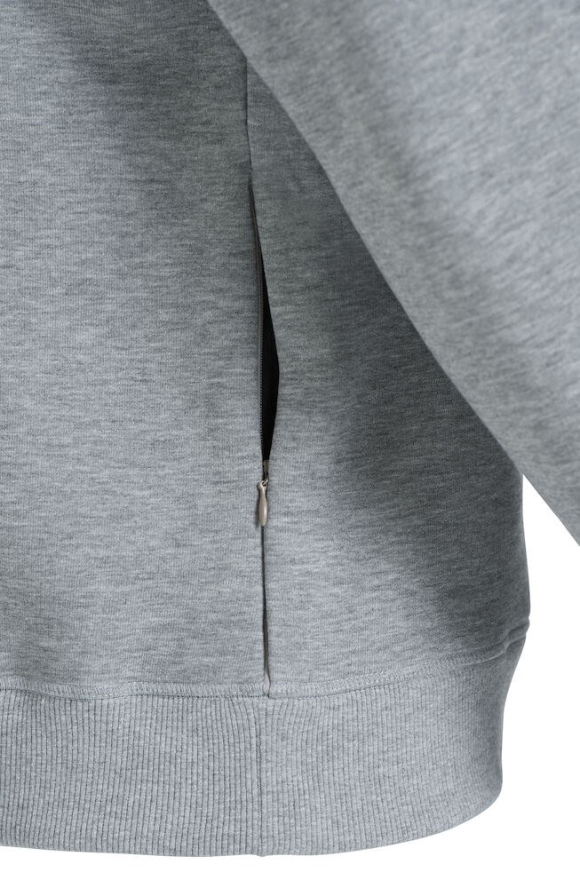 Moderne unisex sweater met ronde hals en een moderne pasvorm. De sweater is voorzien van een verborgen zak met rits aan de zijkant. De hoogwaardige afwerking met ton sur ton flatlock naden en 2x2 rib in de boord en onderaan de mouwen geven deze sweater een professionele uitstraling. De behandelingen met softener en enzymen zorgen ervoor dat de sweater zacht en glad aanvoelt.