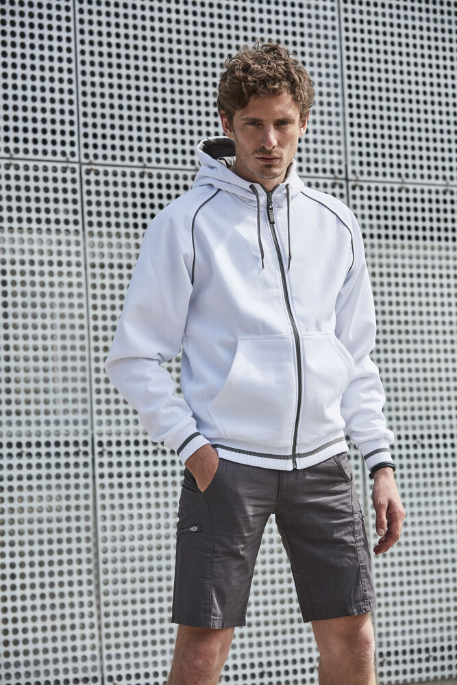 Opvallend en modieus piqué vest met capuchon en een eigentijdse, sportieve uitstraling. Het vest is professioneel afgewerkt met contrasterende binnenkant van de capuchon, contrasterende ritsen en rib met contraststreep bij de boord en onderaan de mouwen. De behandeling met softener zorgt ervoor dat het vest zacht aanvoelt. Het vest is een ware bestseller dankzij de zware, hoogwaardige kwaliteit en het unieke design.