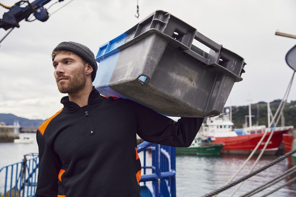 De Ambition Half Zip is een unisex trui met halve rits en contrasterende panelen voor betere zichtbaarheid. Gemaakt van gerecycled polyester dat aanvoelt als katoen voor extra draagcomfort. Afgewerkt met een verborgen zijzak met rits, manchetten en boord in ribstof en gemakkelijk te verwijderen label voor rebranding.