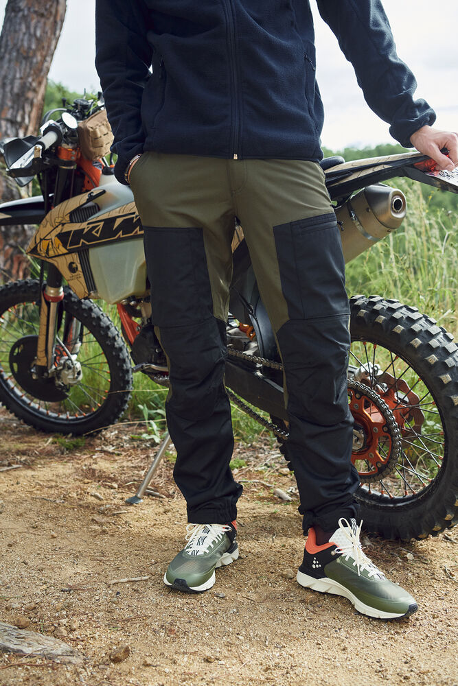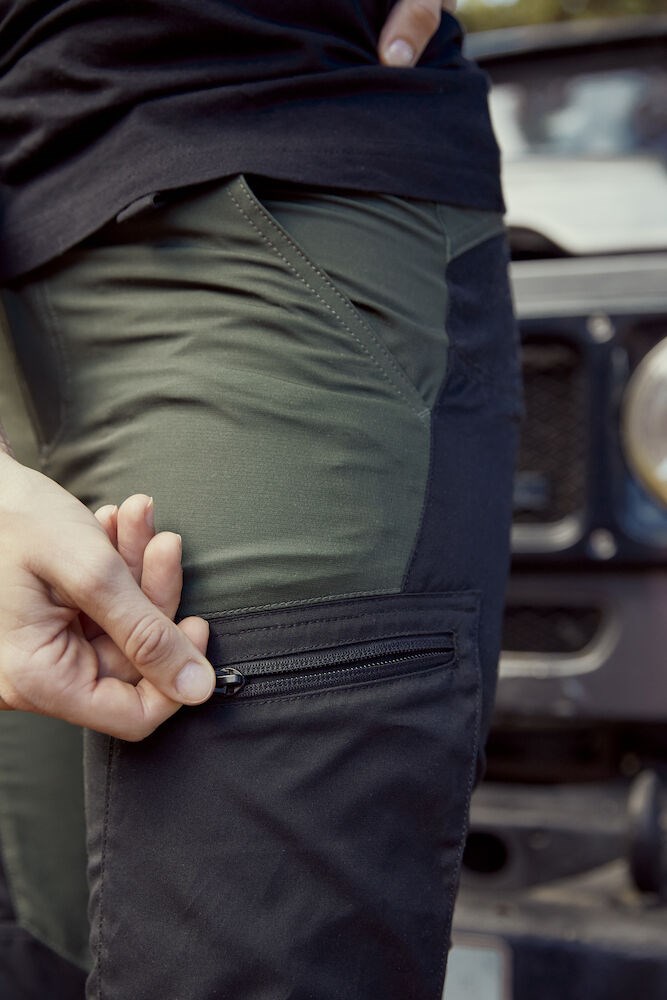 Een moderne trekking broek van een comfortabele en ventilerende 4-way stretch kwaliteit. Met delen van hoogwaardige wind- en waterafstotende stof. Afgewerkt met elastiek in de taille en een voorgevormde knie voor verbeterde mobiliteit. Twee voorzakken, twee beenzakken met rits en één achter. De onderzijde van de broekspijp is verstelbaar met elastiek en klittenband. Met ruimte voor het invoegen van kniebeschermers.