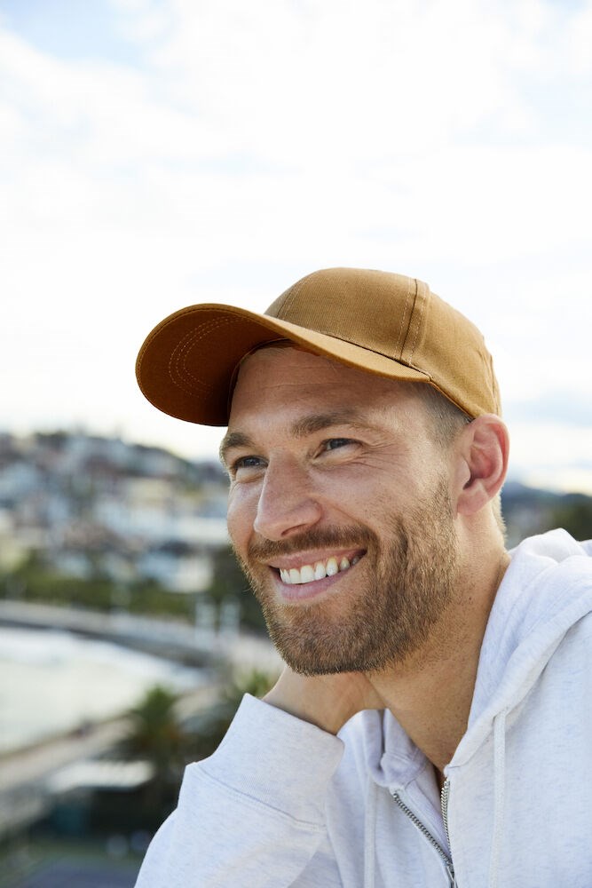 Klassieke cap met zes panelen van ongeborstelde katoenen twill. Op iedere maat af te stellen dankzij de klittenbandsluiting aan de achterzijde.