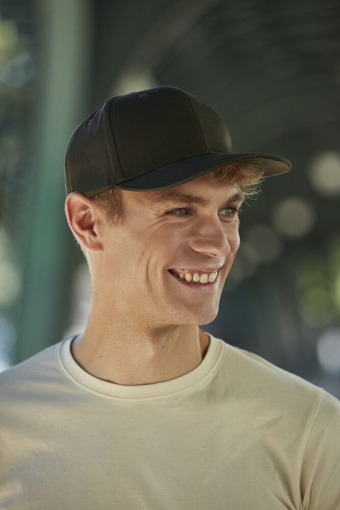 Streetstyle cap met zes panelen en een platte klep. Gemaakt van ongeborstelde katoenen twill en voorzien van verstelbare sluiting met drukknopen.