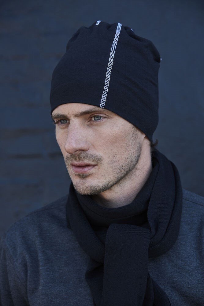 Warme muts gemaakt van elastisch fleece voor een comfortabele bescherming tegen de kou. De muts is opvallend afgewerkt met reflecterende flatlock naden op de bovenzijde voor optimale zichtbaarheid.