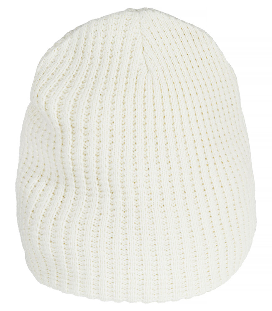 Gebreide muts met dubbele structuur. Afgewerkt met vier naden aan de bovenkant voor een mooie pasvorm.