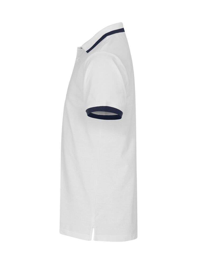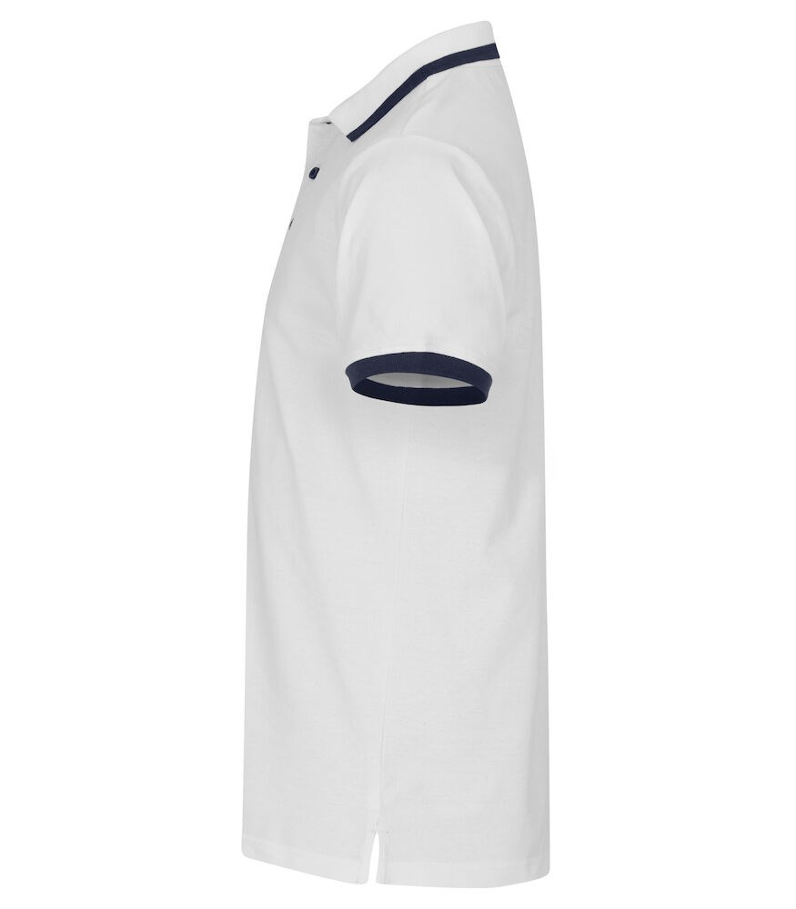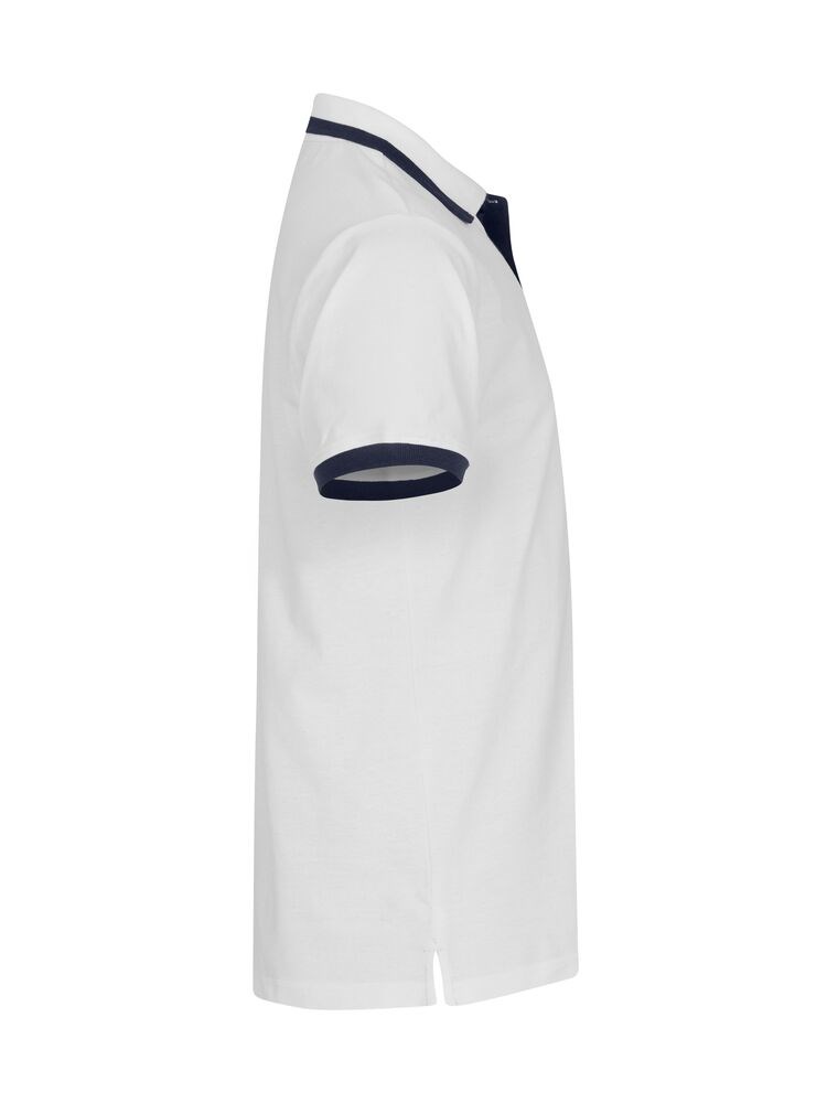 Moderne polo met contrasterende details in de kraag en bij de mouwen. De polo is hoogwaardig afgewerkt met zijsplitjes, ton sur ton knopen, verstevigde necktape en een gemakkelijk te verwijderen label voor rebranding. Goed te combineren met de Conrad en Amarillo polo’s.