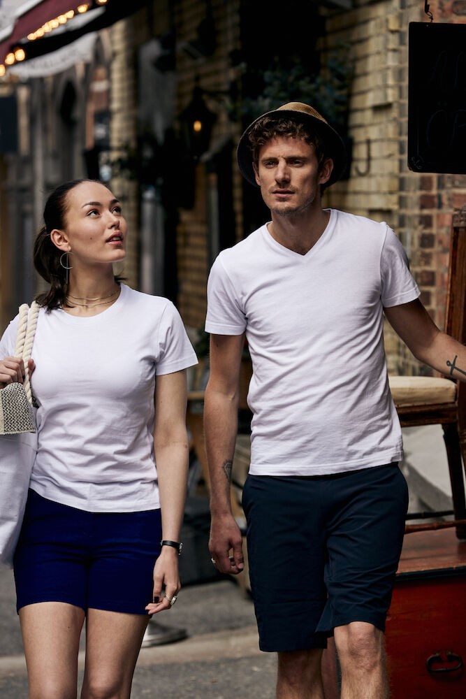 Modern, lichtgewicht T-shirt met comfortabele pasvorm en V-hals. Het T-shirt is rondgebreid en heeft geen zijnaden.