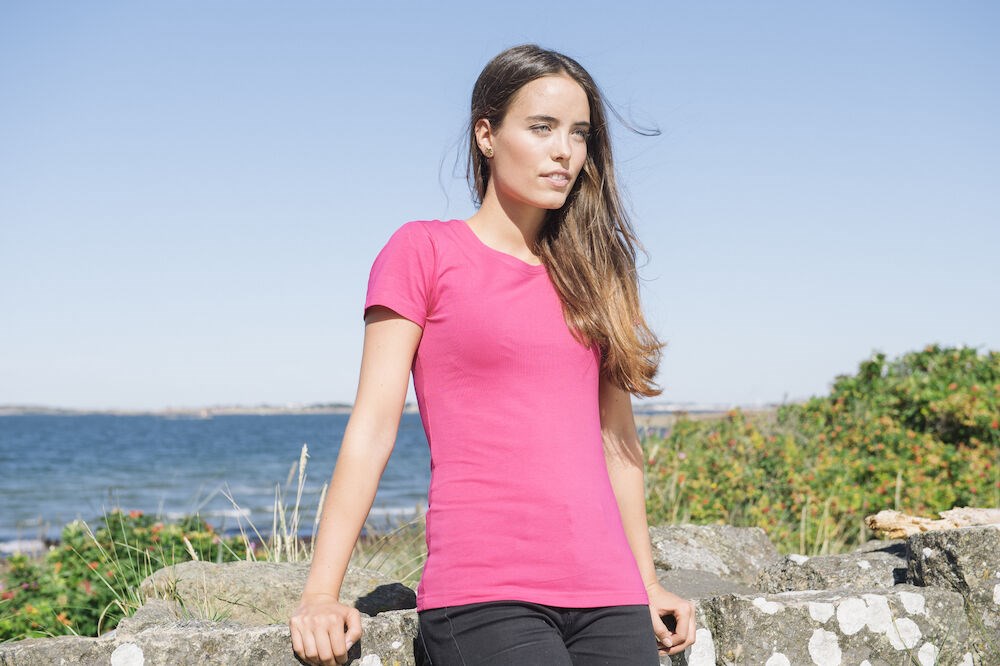 Modieus dames stretch T-shirt met nauwsluitende pasvorm en een ruime ronde hals. Het T-shirt is professioneel afgewerkt bij de zijnaden en kraag en voorzien van necktape voor optimaal draagcomfort. De behandelingen met softener en enzymen zorgen ervoor dat het T-shirt zacht en glad aanvoelt. Het T-shirt sluit mooi aan bij de Stretch-T voor heren.