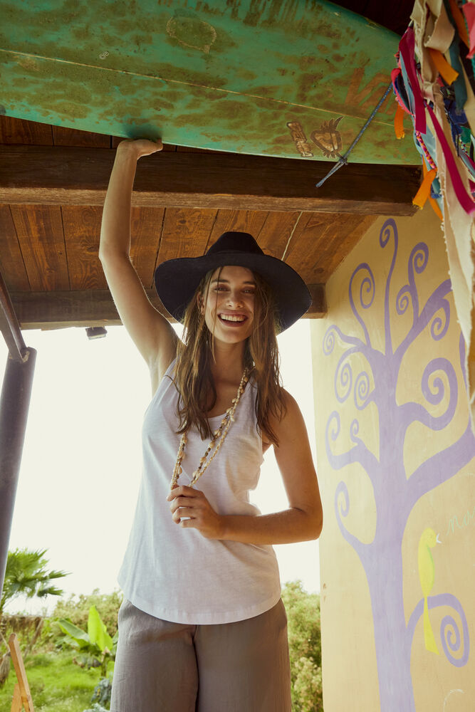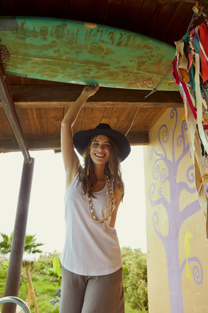 Modern aansluitende tanktop van zeer hoogwaardig slub ringgesponnen jersey katoen. Met professionele afwerking van de zijnaden en een opening aan de achterzijde. De tanktop is voorgekrompen en met enzymen behandeld waardoor deze zacht en glad aanvoelt. Een eenvoudig te verwijderen label voor rebranding.