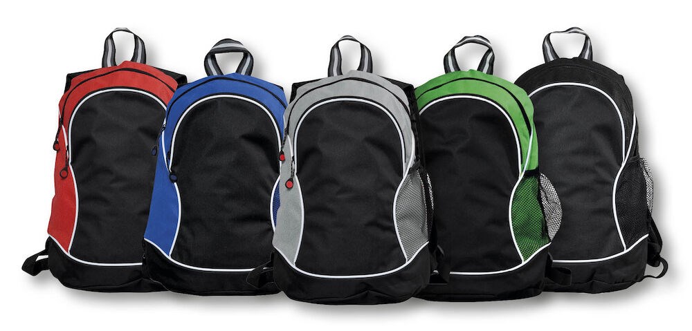 Opvallende, duo kleur rugzak voor extra herkenbaarheid. De tas heeft een hoofdcompartiment, een kleiner compartiment aan de voorzijde en een mesh zak aan de zijkant voor bijvoorbeeld een flesje. Afmetingen en volume: 29x18x42cm ≈ 21L