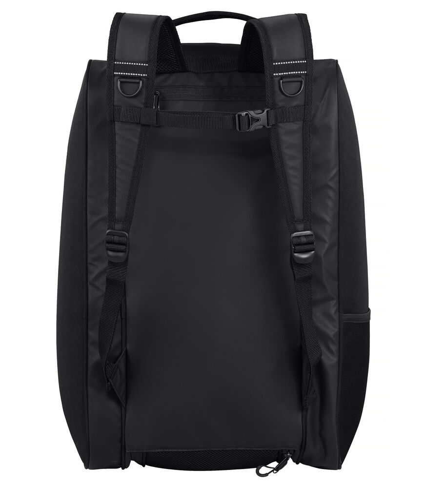 Een tas die voor een breed scala aan toepassingen gebruikt kan worden doordat deze op meerdere manieren gedragen kan worden. Zo heeft de tas een handvat aan de boven- en voorkant, maar kan het ook als rugzak gedragen worden. De schouderbanden zijn voorzien van twee D-ringen en een borstband voor meer stabiliteit onderweg. De tas bevat twee grote zijvakken met rits, waarvan één geïsoleerd - perfect voor koude dranken en etenswaren. Verder heeft de tas een grote u-vormige ritssluiting voor gemakkelijke toegang en snel inpakken. De tas is voorzien van een geventileerd schoenen-/handdoekvak, een bovenvak met ritssluiting en een sleutelhangerhaak, een verborgen veiligheidsvak achter de schouderbanden en een groot zijvak van mesh. Afgewerkt met reflecterende details. Afmetingen en volume: 54x28x34cm ≈ 51L