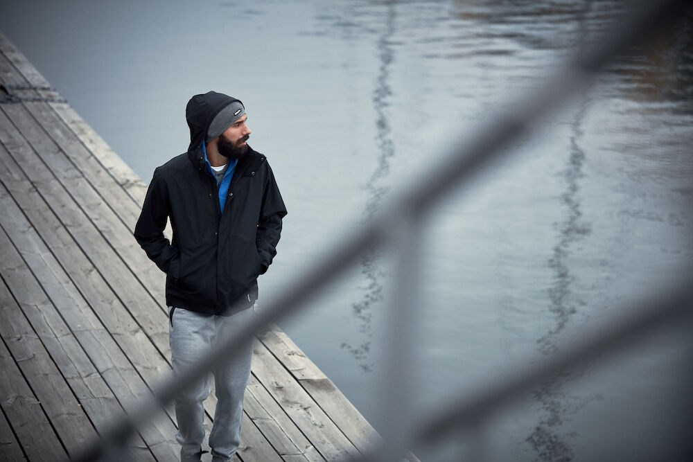 Comfortable jacket made of soft, elastic and functional polyester. Two pockets. • Comfortable jacket • Soft and functional polyester fabric • Ergonomic, elastic fit • Two pockets