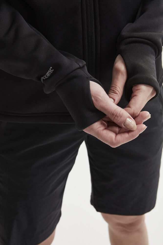 Soft and comfortable Polartec midlayer hoodie with zip pocket. • Double-layer hoodie • Pocket with zip