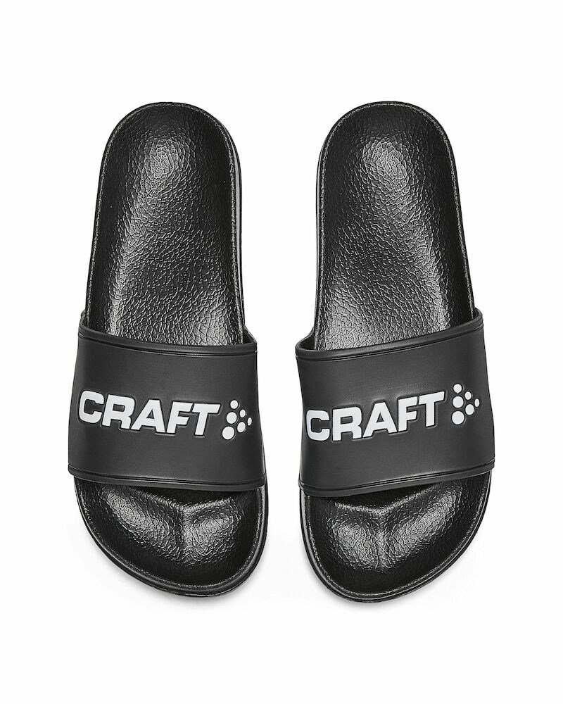 These lightweight slides have a contoured foot bed that provides cushioning with every stride. The classic design features a bandage upper with contrast Craft logo. Perfect for after sport and casual use. • Contoured Footbed • Patterned outsole provides better grip