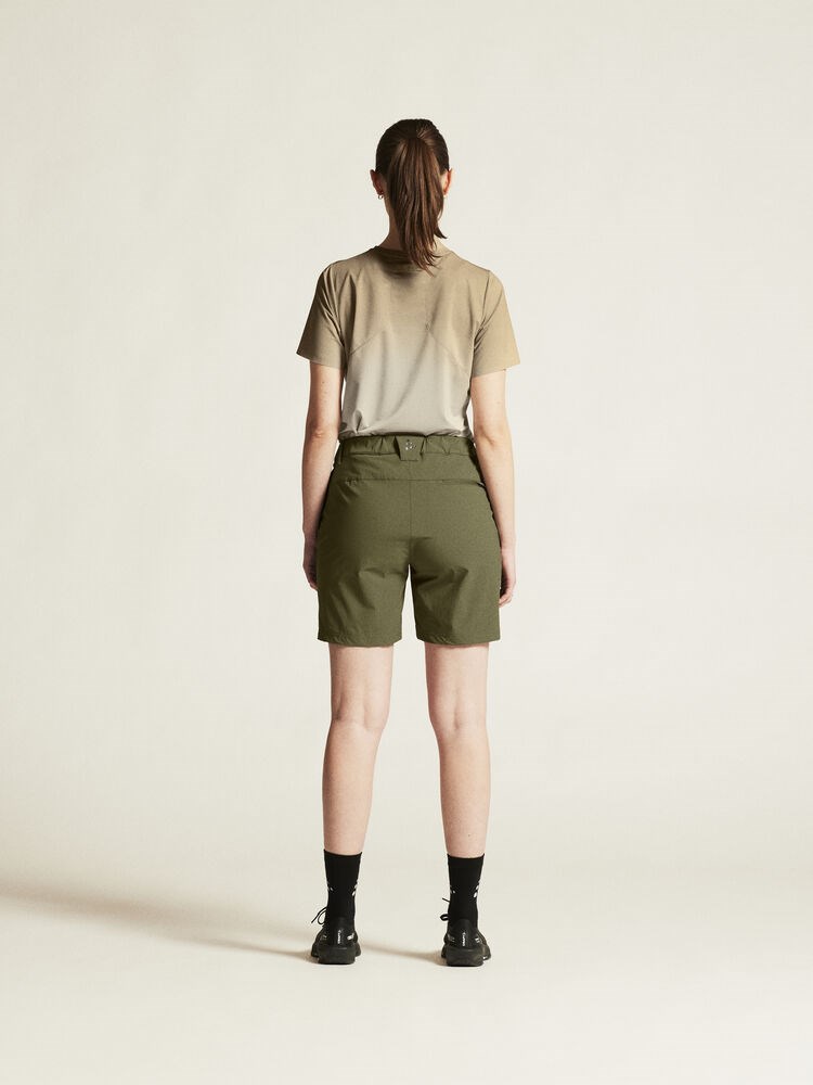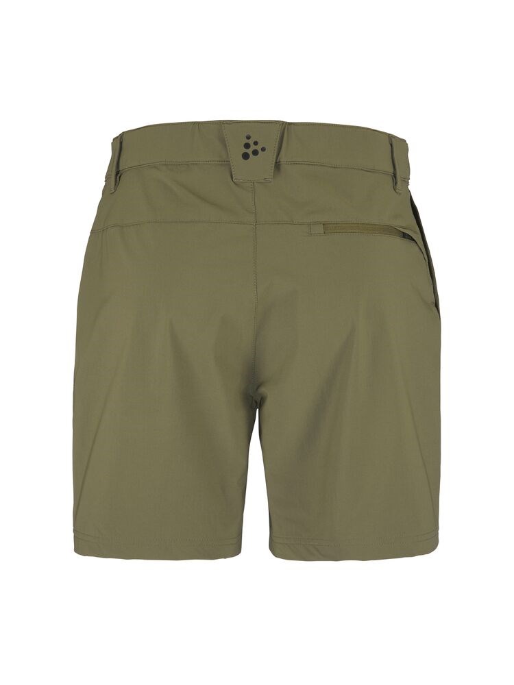 Advanced outdoor shorts made of 4-way stretch fabric with soft inside for optimal freedom of movement and comfort. Adjustable waist, belt loops and plenty of zip pockets. • Soft 4 ways stretch fabric with soft inside • Two side pockets with zip • One leg pockets with zip • Adjustable waist with velcro and elastic • Back pocket with zip • Belt loops in waist • Craft logo at left hip and six dot at back belt loop • Craft branded press button in waist