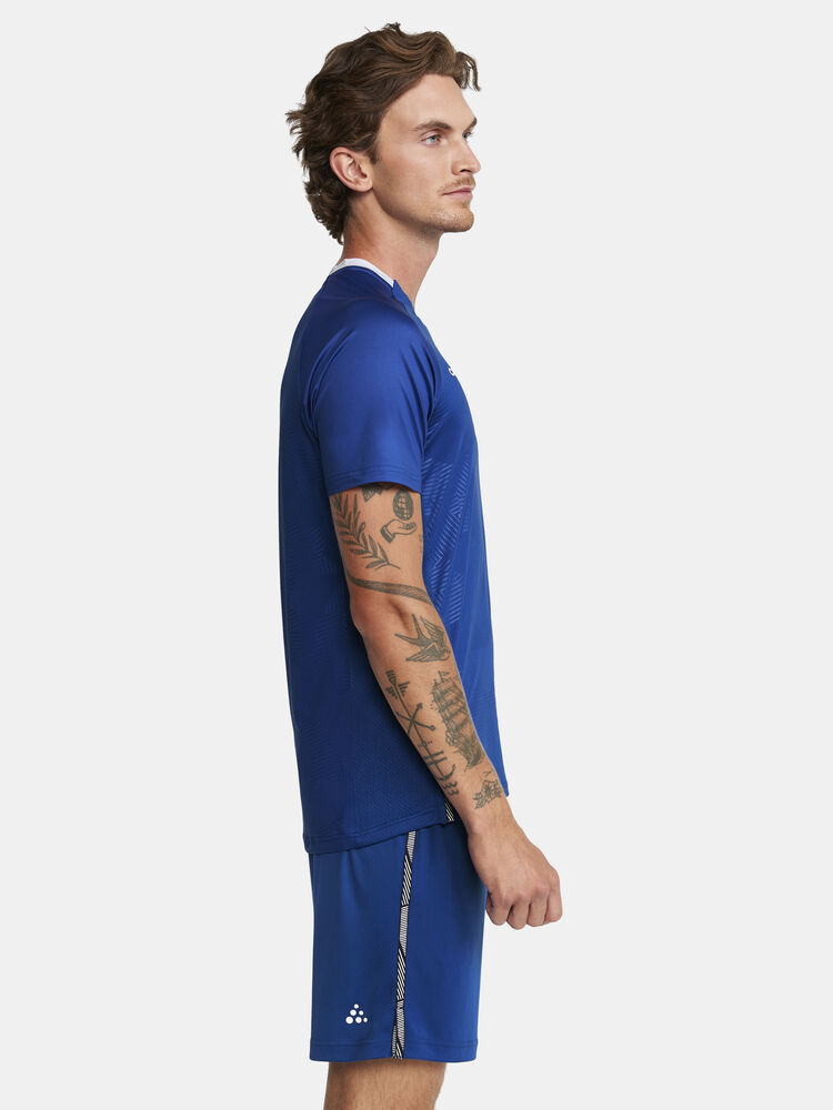 Premier Solid Jersey is a premium game-day jersey designed for maximum performance at the highest level of sports. This highly functional jersey is made of a thin, very elastic and recycled polyester fabric and comes with mesh side panels for optimal ventilation and efficient body-temperature management. High elasticity, ergonomic design and side slits ensure superb freedom of movement. In addition, the jersey's design includes taped collar as well as structured fabric surface at front and back. • Recycled polyester • Thin and very elastic fabric • Structured fabric surface • Mesh side panels • Taped collar