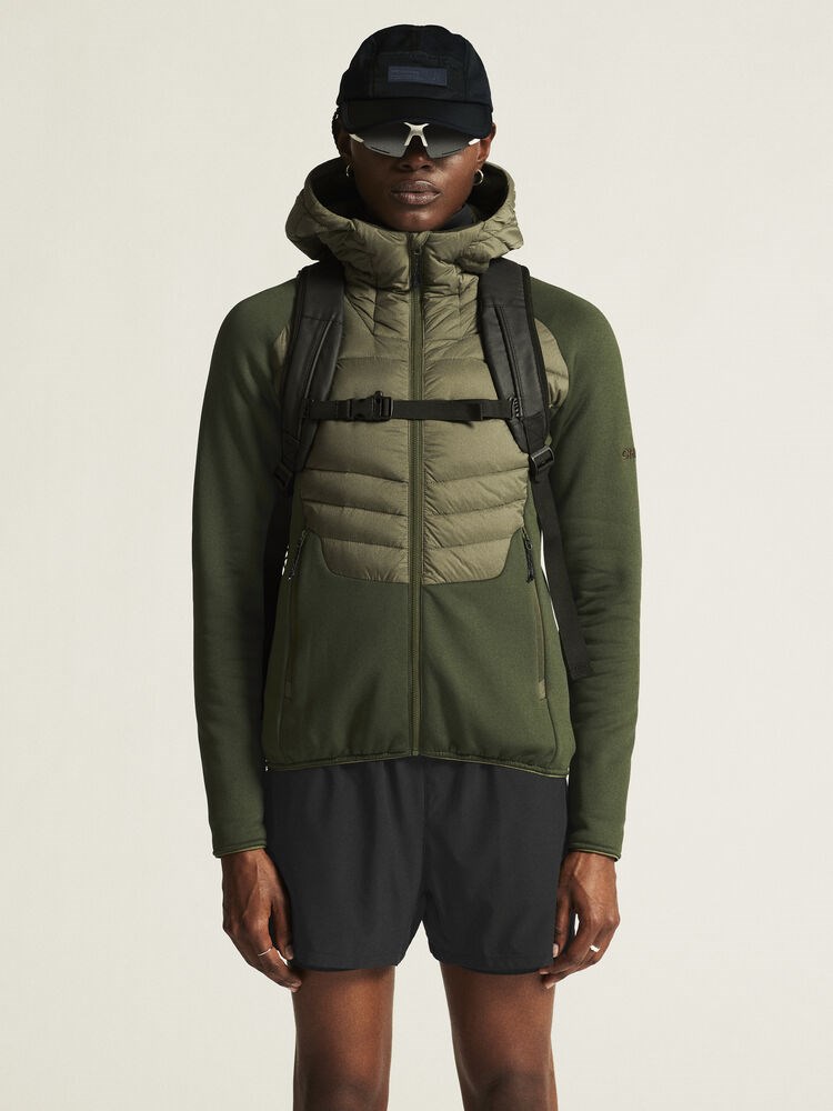 ADV Explore Light Down Hybrid Jacket is a warm and versatile hybrid jacket that works perfect as an outer layer in milder temperatures or as a mid-layer underneath a shell jacket in colder conditions. This insulation hybrid jacket combines lightweight 90/10 down insulation at upper body with brushed power fleece at sleeves, sides and lower body. The result is a versatile jacket that provides excellent warmth, efficient moisture transport, and optimal freedom of movement during intense physical activities in chilly conditions. The hybrid jacket also features slightly dropped back for enhanced protection and two side zip pockets for secure and convenient storage of keys, phone, energy bar, etc. • Water-repellent ripstop shell fabric made from recycled polyester at upper body and hood • Thin, lightweight down insulation 90/10 at upper body and hood • Brushed power fleece fabric at sleeves, sides and lower body • Slightly dropped back • Two side zip pockets • Regular fit