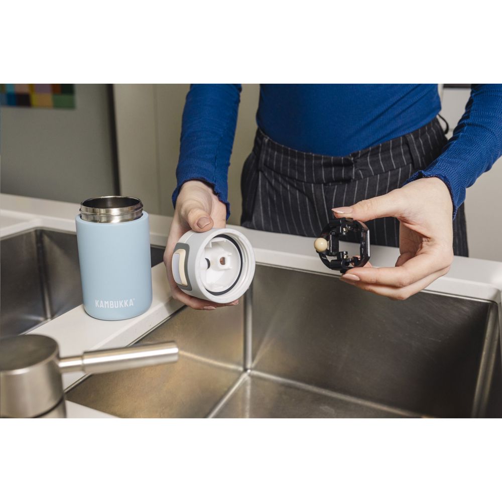 De ideale thermosbeker voor onderweg van het merk Kambukka® • excellente kwaliteit • fraaie vormgeving • handig en klein formaat • vacuümgeïsoleerd 18/8 RVS • houdt dranken tot 5 uur warm en tot 11 uur koud • 3-in-1 deksel met 2 drinkposities: even drukken en snel een slok nemen of volledig openen om zonder knoeien, net zo comfortabel te drinken als uit een mok • gemakkelijk te reinigen dankzij Snapclean®: met één handeling verwijder je het binnenste mechanisme • universeel deksel: past ook op andere Kambukka® drinkflessen • het deksel is vaatwasserbestendig - de beker met de hand afwassen • antislipbodem • 100% lekvrij • inhoud 300 ml. VOORRAAD INFORMATIE: Tot 1.000 stuks beschikbaar binnen 6 dagen. Uitzonderingen voorbehouden.