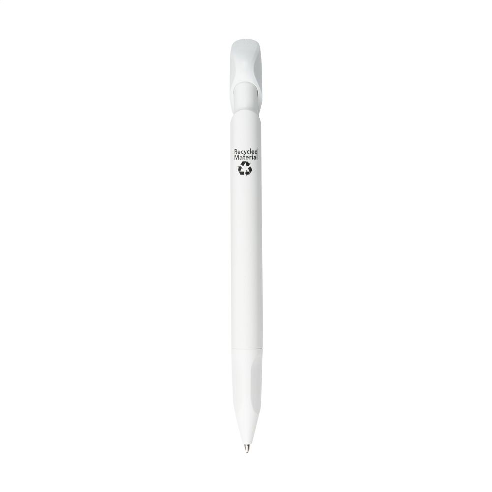 Blauwschrijvende balpen van het merk Senator®. Gemaakt van 95% R-ABS gerecycled materiaal en mooi gepolijst. De pen heeft een opvallend design door de bijzondere clip en het doordachte puntstuk met ergonomische grip. Made in Germany. Lichte oneffenheden in het oppervlak van het gerecyclede materiaal zijn mogelijk.