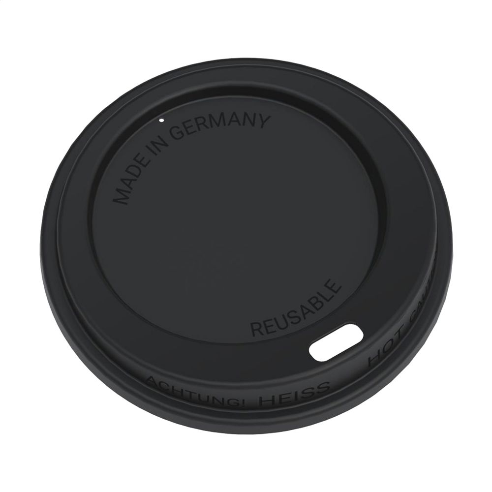 Herbruikbare koffie to-go beker van kunststof. Het deksel met drinkopening voorkomt morsen. Past in de standaard drinkhouder van auto's, dus ideaal voor onderweg, maar ook als beker bij de koffiemachine. Hét perfecte alternatief voor de wegwerpkoffiebeker. Door over te stappen op een herbruikbare beker komen er miljarden bekers minder bij het afval terecht. Deze fraaie beker is 100% recyclebaar en stapelbaar. Vaatwasserbestendig. Voor behoud van de opdruk wordt met de hand afwassen aanbevolen. Made in Germany. Inhoud 200 ml. Minimale afname 100 stuks per kleur.