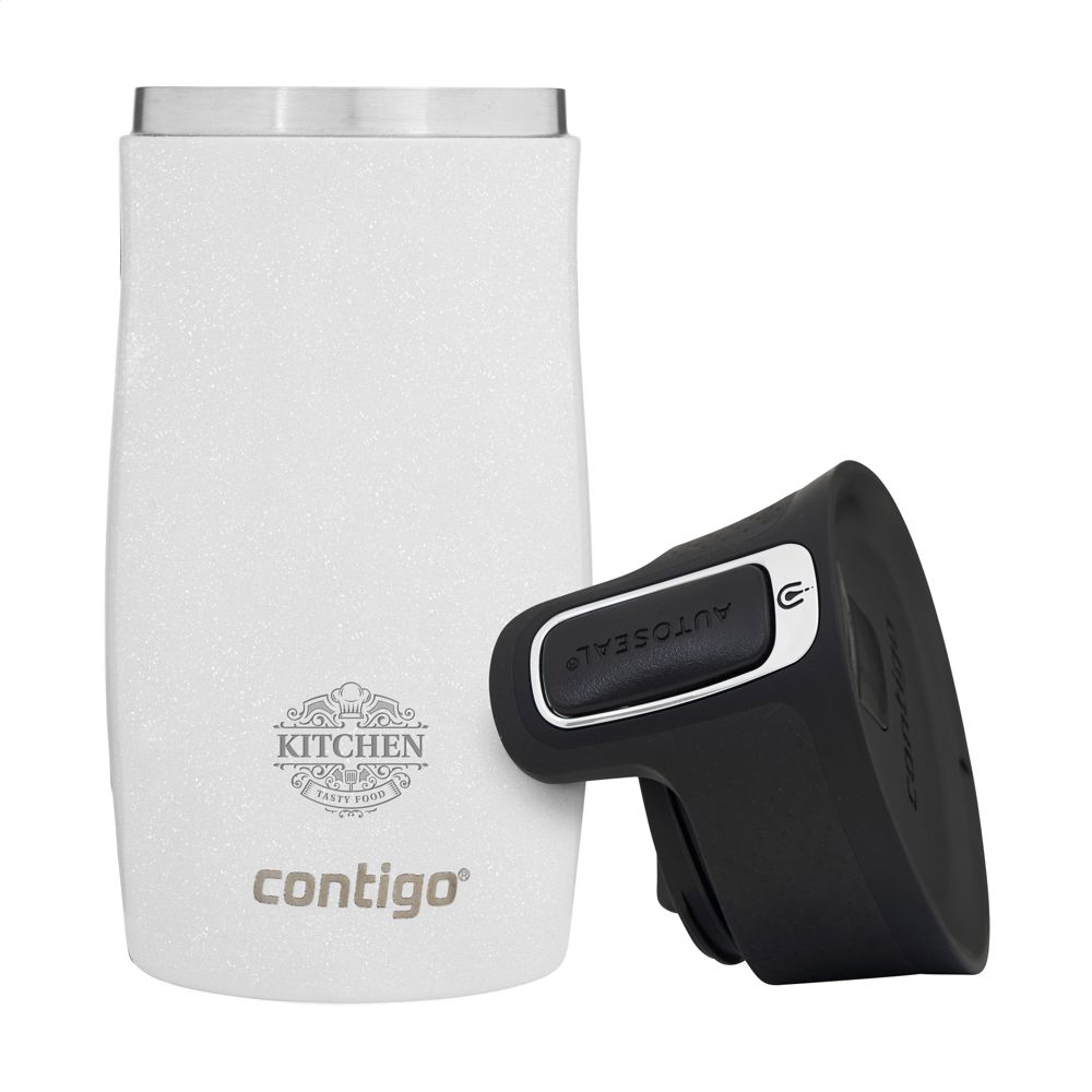 Dubbelwandige Contigo® thermosbeker met RVS binnenwand, van het merk Contigo®. De AUTOSEAL™ technologie met extra veiligheidssluiting garandeert een 100% mors- en lekvrije drinkervaring. De THERMALOCK™-technologie houdt dranken tot 14 uur koud of tot 4 uur warm. Enkel het deksel is vaatwasserbestendig (in het bovenste rek plaatsen). De beker met de hand afwassen. Inhoud 300 ml. VOORRAAD INFORMATIE: Tot 1.000 stuks beschikbaar binnen 10 werkdagen. Uitzonderingen voorbehouden. Contigo: Dé uitblinker in kwaliteit, vormgeving en technologie. Direct herkenbaar aan de strakke en stijlvolle vormgeving, stevig en sterk. De innovatieve waterflessen en thermosbekers zijn geurloos, smaakvrij en BPA-vrij. De drinkflessen zijn met één hand te bedienen en gegarandeerd 100% lekvrij, dus overal en altijd te gebruiken. Met 2 jaar fabrieksgarantie.